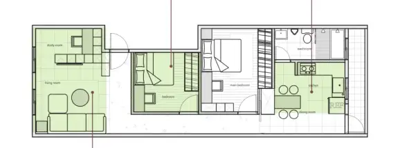 還在為裝修煩惱嗎?關(guān)注我,解決您的裝修煩惱。安星家讓您裝修更安心 ![]() 問題1中古屋的格局已將客廳、餐廳、臥房的基本功能定義劃分,封閉又單調(diào),並侷限了採光範(fàn)圍。 問題2因為三房衍生出多道牆面,過於著重於住房數(shù)量,反而無法在機(jī)能性空間上有所發(fā)揮。 破解1臥房不隔間,隨需求調(diào)整機(jī)能,拆掉主臥與次臥牆面,將原本次臥調(diào)整為機(jī)能性的更衣間,符合時下都會型態(tài)的年輕夫妻生活空間需求,未來也可預(yù)備作為小孩房。開放式更衣間也可藉此獲得採光。 破解2書房採取玻璃隔間延伸視覺端景,將多功能房進(jìn)行空間切割化整合,化零為整,書房採用強(qiáng)化玻璃隔間,與客廳、餐廳空間通透,延伸視覺端景,但放下隱藏式捲簾,即可保有隱私,回歸隔間特有優(yōu)勢。拆除一房,換來凝聚家人情感的寬闊空間僅有21坪的空間,雖然隔出3房,卻也讓公共空間變得狹小,且過多隔牆限制採光,因而產(chǎn)生陰暗、狹隘感。本案為新成屋,格局問題不大,於是在不動廁所、廚房的前提下,拆除其中一房規(guī)劃成用餐區(qū),並利用開放式設(shè)計,將客餐廳兩個空間做串聯(lián),打造成一個開放,且可凝聚一家人情感的公共區(qū)域;原來的開放式廚房,藉由加裝拉門與衛(wèi)浴牆面拉齊,營造空間線條俐落感,也順勢將走道劃入廚房,擴(kuò)大使用空間,也避免產(chǎn)生畸零死角。 ![]() 問題1原始格局規(guī)劃,產(chǎn)生太多不必要且浪費的過道空間。 問題2隔成3房,公共空間變得狹獈,缺少開放感。 破解1隔牆拉齊,重整畸零地,利用大型櫃體以及拉門,將主臥、衛(wèi)浴及廚房的隔牆線條拉齊,不只營造視覺上的俐落感,也把因隔間形成的過道空間劃入使用範(fàn)圍,巧妙達(dá)到擴(kuò)充空間目的,也避免產(chǎn)生畸零地。 破解2拆除一房,釋放空間打造開闊感。拆除一房釋放空間,藉此擴(kuò)大公共區(qū)域,並以開放式設(shè)計,串聯(lián)客餐廳,打造開闊且可增加家人互動的生活場域;因為拆除隔牆,增加一面採光,也解決了公共空間原本光線不足的問題。 ![]() 微調(diào)格局,調(diào)整各區(qū)空間比例 在房數(shù)足夠的情形下,有時會出現(xiàn)空間比例不適當(dāng)?shù)那樾?,像是臥房過大或是空間太小當(dāng)不成臥房使用,只能作為儲藏室。另外,不當(dāng)隔間的配置也容易造成畸零空間的產(chǎn)生。此時可透過微調(diào)格局,調(diào)動隔間位置,讓空間尺度獲得合理使用,同時消弭畸零地帶,使空間比例更為平衡。 ![]() 問題格局,空間比例,失衡不合用 隔間隔得不對,使得空間坪數(shù)分配不均,產(chǎn)生過大或過小不合用的情形。舉例來説,分給臥房的坪數(shù)太多,造成過大而有閒置空間,使得比例失衡;再者,隔間或出入口位置不對,也容易形成難以使用的畸零地帶,像是過長的廊道或是不實用的儲藏空間,空間變得不易利用,坪效未能全部發(fā)揮。 ![]() 尺度思考01 拆除隔間重調(diào)比例,轉(zhuǎn)換空間角色。先確定各空間的使用角色,再確認(rèn)公私領(lǐng)域的隔間尺度是否適當(dāng)。舉例來説,在三房的情況下,若其中一房比例太大時,且要作為書房使用,則可拆除隔間縮小尺度,釋放空間給公共區(qū)或臥房等鄰近區(qū)域。同時,透過公共區(qū)合併,可維持通透的空間尺度。 櫃體尺寸設(shè)計02 開門或抽拉櫃都需注意是否有拉出空間,若馬桶和洗手檯成l型配置,浴櫃本身需注意開啟的方式是否會和馬桶相互打到。若是開門會卡到馬桶,則建議改成開放櫃。另外,若是抽屜式的設(shè)計,則要注意是否能完全拉出,考量到浴櫃的深度約在50~65公分之間,拉出時也需留有50~65公分的寬度才行。 ![]() 尺度思考02 拉齊牆面,避免畸零空間 在思考空間格局時,可當(dāng)作是一個盒子,隔間或櫃體等同於隔板??上胂褚幌拢羰窍噜彽母舭迩搬嵛恢貌灰?,中間則就產(chǎn)生了空間的落差,這就是所謂的畸零地帶,這樣的空間多半是不易使用,因此不如將隔板排成平行,整體形成完整方正的形狀,空間更好運用。另外,除了可透過隔間調(diào)整畸零空間,也可透過玻璃拉門,可開闔的設(shè)計讓畸零區(qū)納入空間之中,消弭於無形。 尺度思考03 隔間向外挪一些,擴(kuò)增空間機(jī)能 空間坪數(shù)過小的情況下,可能會造成使用機(jī)能不足,此時建議將隔間向外挪移擴(kuò)大坪數(shù),才能讓機(jī)能入內(nèi)。舉例來説,像是半套的衛(wèi)浴空間,透過空間位移增加坪數(shù),就能多出淋浴區(qū)。另外,臥房向外挪移一坪大,就能多了更衣空間,甚至還可能納入衛(wèi)浴,臥房機(jī)能更加完整。 實例解析,空間重整,化解畸零提高空間坪效 約40年的老房子,前後兩面採光、屋型呈瘦長型,由於空間規(guī)劃不當(dāng),導(dǎo)致臥房大小不一,且出現(xiàn)浪費空間的畸零地。首先,鄰近廚房的一房拆除,將空間進(jìn)行整併,讓廚房區(qū)變得方正好規(guī)劃,不只增加了用餐區(qū),原本的衛(wèi)浴、廚房也因此得以擴(kuò)大,並重新安排合理的使用動線;把玄關(guān)入口左側(cè)尷尬的空間隔成臥房,雖然因此形成廊道,但善用材質(zhì)與燈光安排,便可解決廊道陰暗問題;另外,入口右側(cè)隔牆拆除,減少客廳封閉感,強(qiáng)調(diào)開闊的空間感。 ![]() 上一篇安星家裝飾,武漢全案整裝